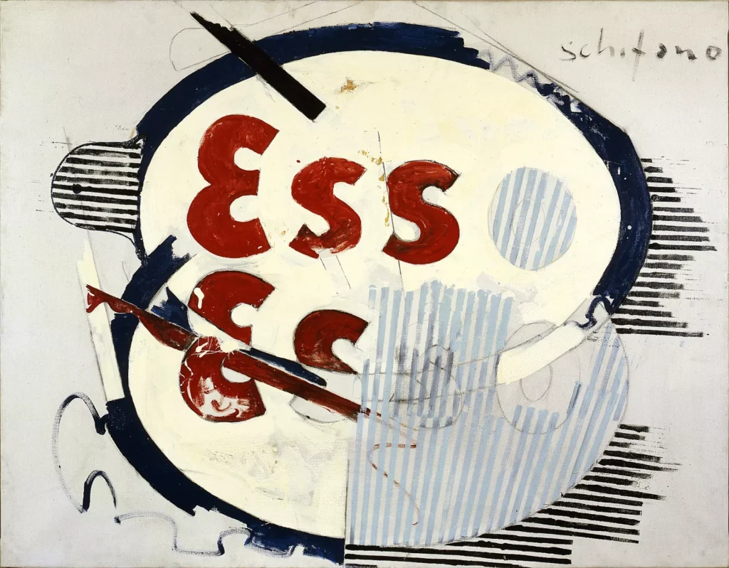Born in Homs, Libya, his father was an archaeologist and restorer working on the excavations at Leptis Magna. His family moved to Rome during an evacuation from the African colonies. He worked at the National Etruscan Museum until he joined the military briefly, and when he came back he devoted himself to painting: In 1960, a cycle of monochrome paintings with stamped numbers and letters. His inclusion in the exhibition The New Realists at Sidney Janis Gallery in New York in 1962 set him alongside names like Warhol, Lichtenstein, Jim Dine and Christo. Submitted to the event was a “Propaganda” painting featuring part of the Coca-Cola logo.